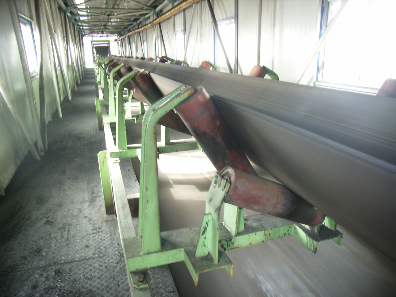 我公司所生產(chǎn)的帶式輸送機(jī),首先是運(yùn)行可靠,在許多需要連續(xù)運(yùn)行的重要的生產(chǎn)單位,如發(fā)電廠煤的輸送,鋼鐵廠和水泥廠散狀物料的輸送,以及港口內(nèi)船舶裝卸等均采用帶式輸送機(jī)。其特點(diǎn)動力消耗低,使用過程中阻力小,對貨物的磨損和破壞均小,生產(chǎn)效率高。不僅在煤廠、鋼鐵廠和礦廠運(yùn)用輸送機(jī),還在小型隧道內(nèi)均可以使用,長度短則幾米,長可達(dá)10米以上,也可以架設(shè)在地面交通混亂和危險(xiǎn)地區(qū)的上空。如在一點(diǎn)或多點(diǎn)受料.也可以向多點(diǎn)或幾個(gè)區(qū)段卸料,需要時(shí),還能把各堆不同的物料進(jìn)行混合。